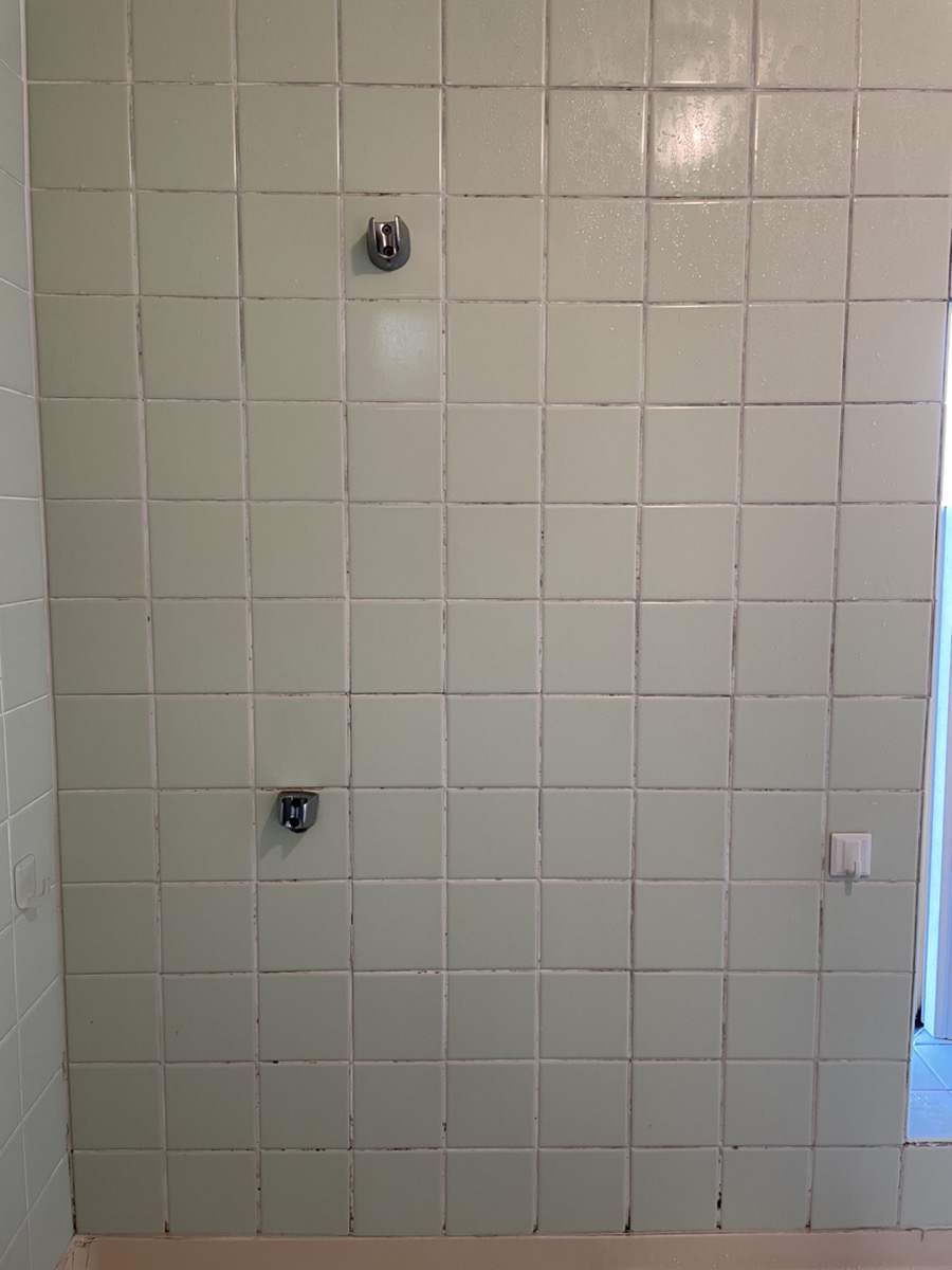 全体も同じくタイルで囲まれており、そのすべてのタイルにカビが付着している状態でした。(全体の写真は撮り忘れてしまいました)