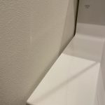 こちらは正面カウンター上部の写真ですが、ご覧の通りタイル目地には黒カビが付着しています。