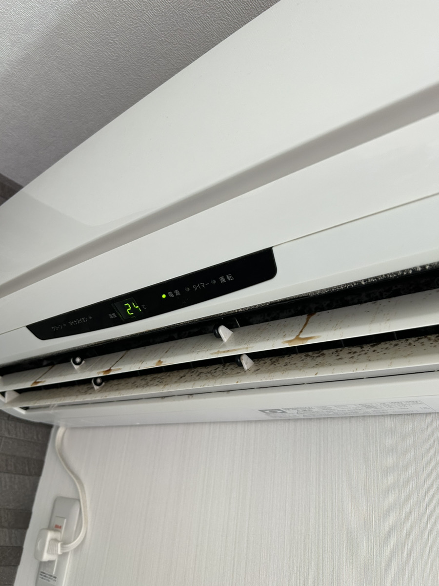 スイッチを入れるとルーバー(白い風向板)が汚れているのが分かると思います。