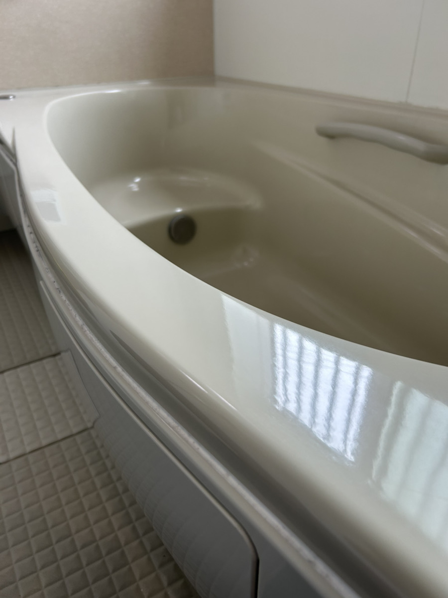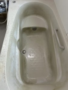 浴槽やエプロンについた頑固な水垢や石鹸カスの復元クリーニング
