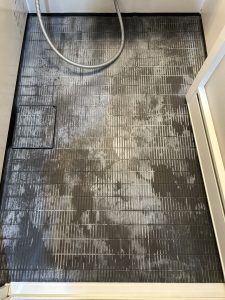パナソニックの浴室で使われているスミピカフロアの頑固な汚れを徹底的にクリーニングさせていただきました。